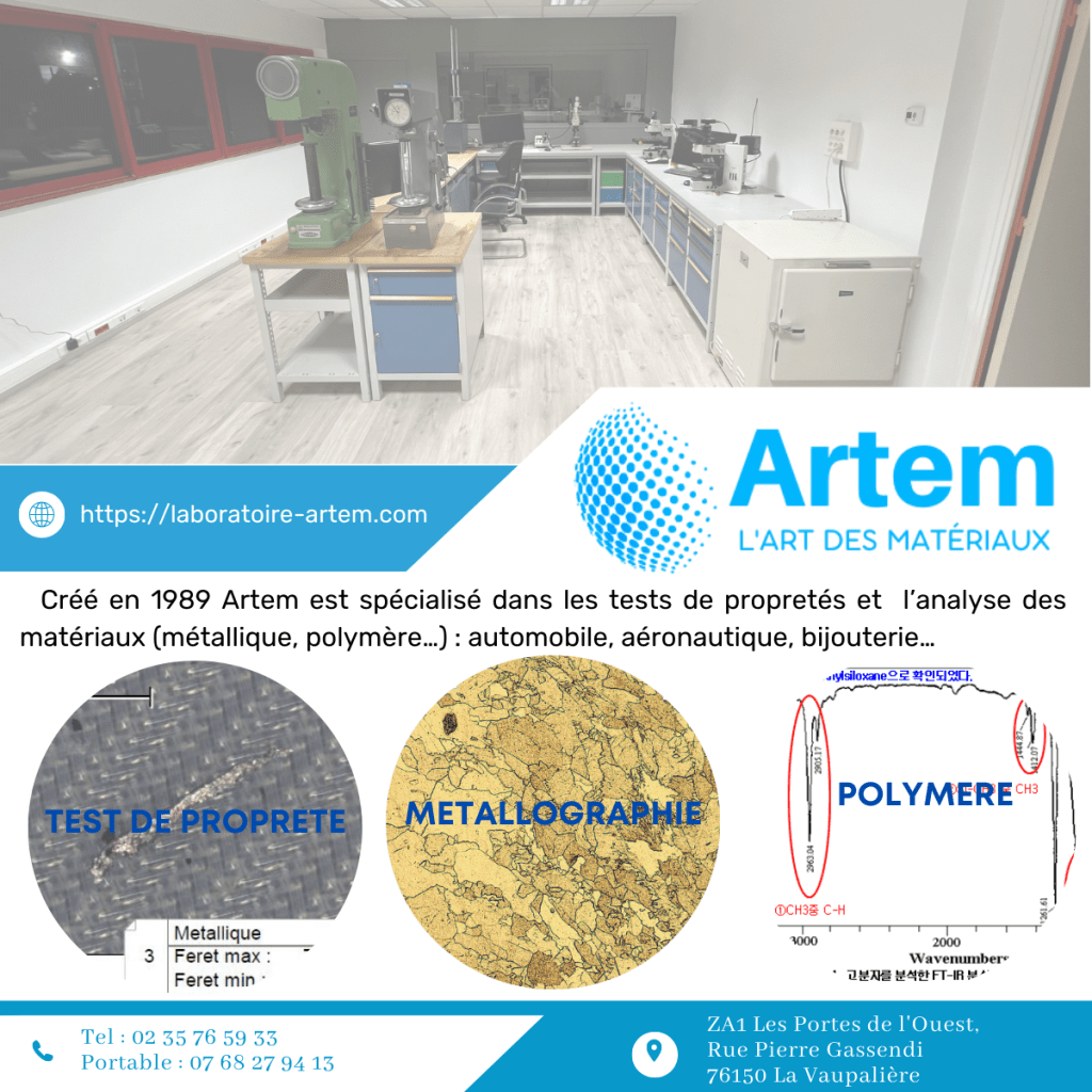 Nos prestations Publié parlaboartem15 mars 202320 mars 2023Publié dansInformation Notre gamme d’analyses sur 3 domaines : test de propreté, métallographie et polymère. Similaire