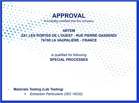 Airbus helicopter qualification: particulate extraction (ISO16232).